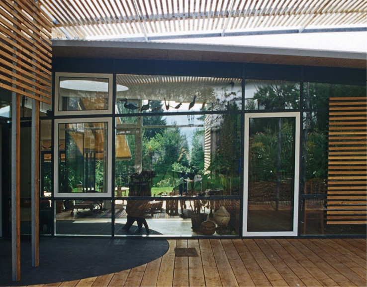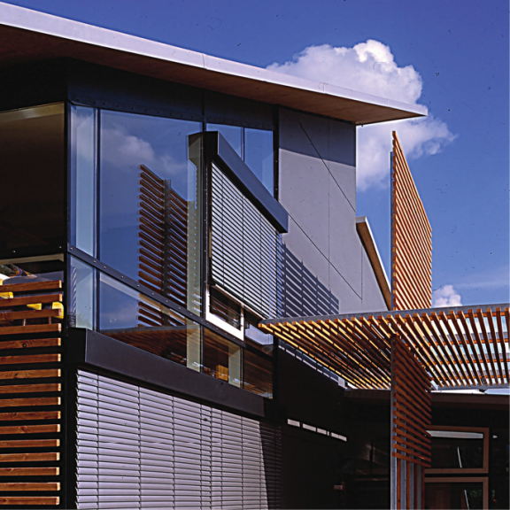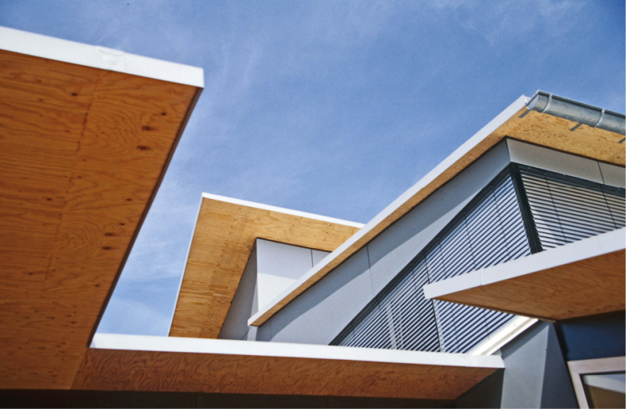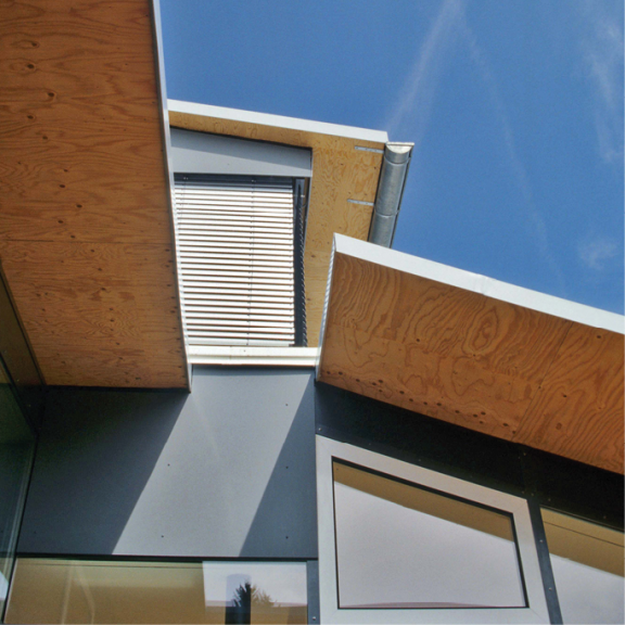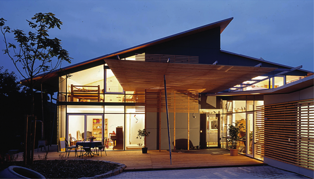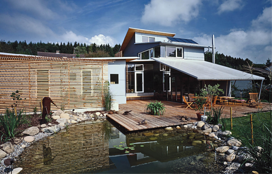 Einfamilienhaus in Massivbauweise, bestehend aus drei Gebäudeteilen.